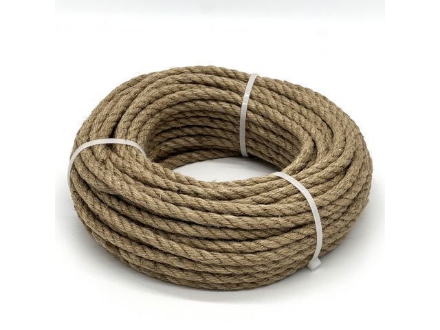 Веревка джутовая получена из кустарника джут, путём плетения и скручивания. Активно веревка используется в различных интерьерных решениях, как для отделки мебели, так и для создания декоративных поделок. Успешно применяется в строительстве, сельском хозяйстве и даже для изготовления домиков и когтеточек для домашних животных. Нашла применение в ландшафтном дизайне