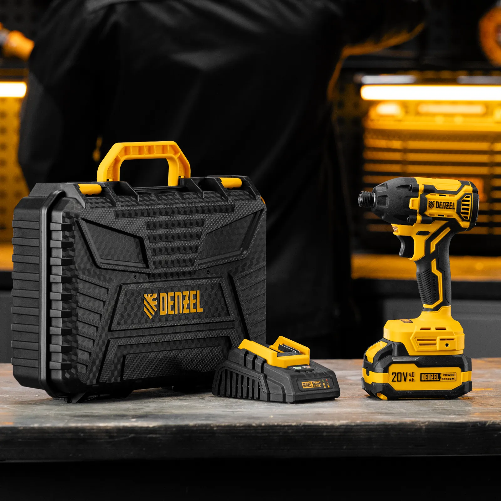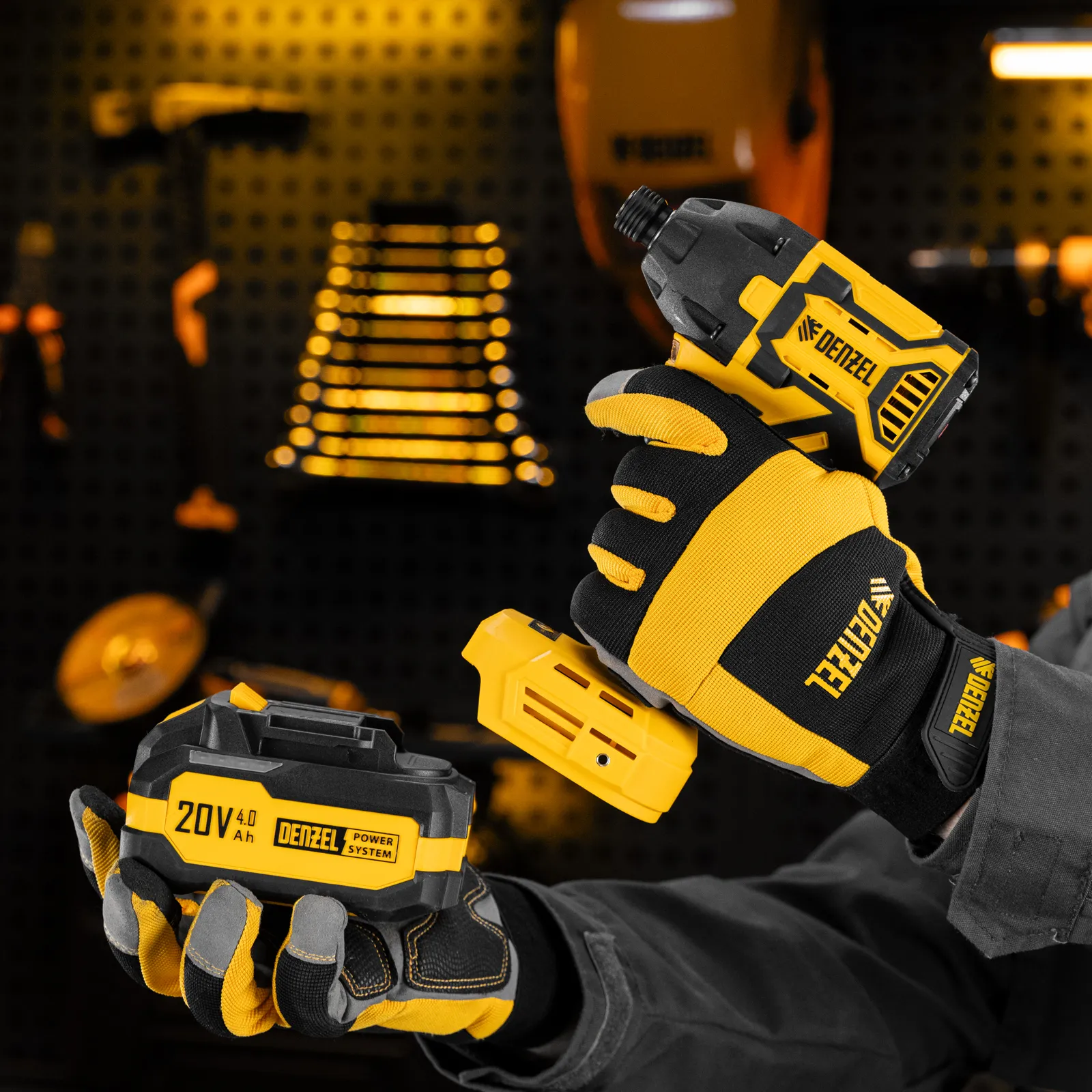- Универсальность — аккумулятор Li-Ion емкостью 4 А·ч совместим со всеми инструментами единой платформы Denzel Power System 20V.