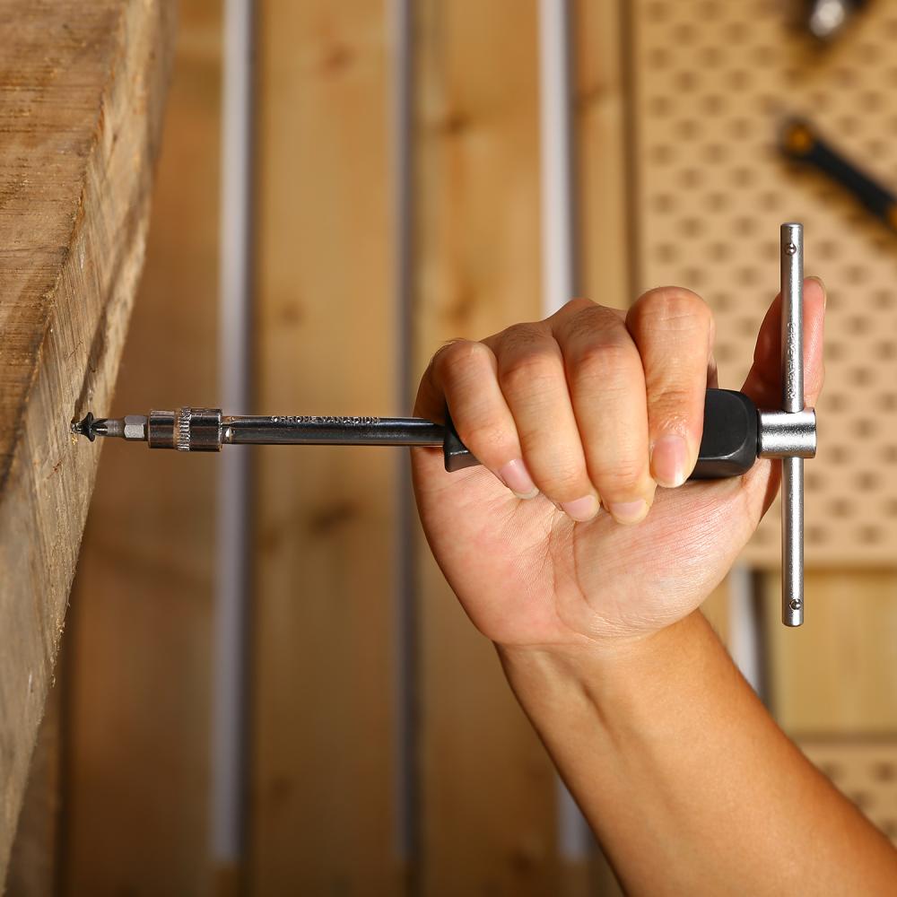 - Конструкция выполнена из прочной стали и имеет Т-образную рукоятку.