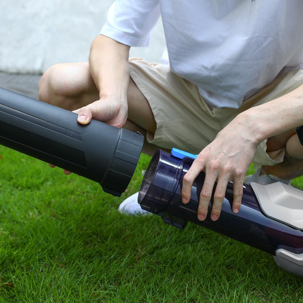 - Функция - обдув. Мощный бесщеточный двигатель обеспечивает поток воздуха до 40м/с, что гарантирует быстрое выполнение работ, а компактность и удобная рукоятка делают использование воздуходувки садовой электрической легким и комфортным.