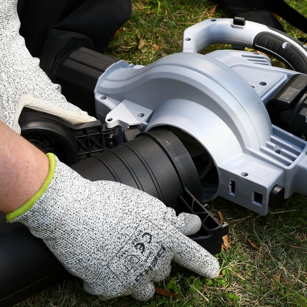 - Для работы в режиме всасывания к воздуходувке крепится мешок для мусора (входит в комплект).