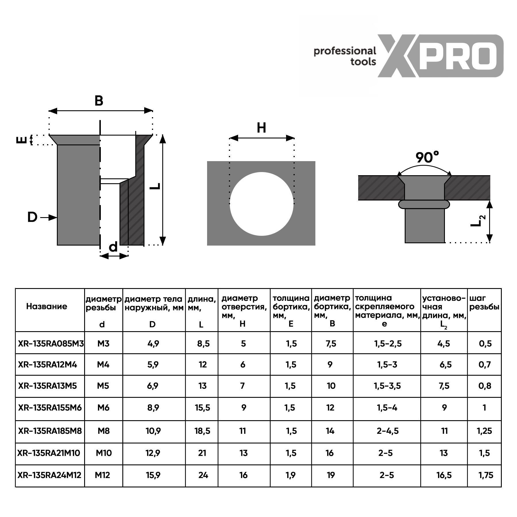 Заклепка резьбовая M10 потай бортик, белый цинк (1000шт.) XPRO XR-135RA21M10-1000