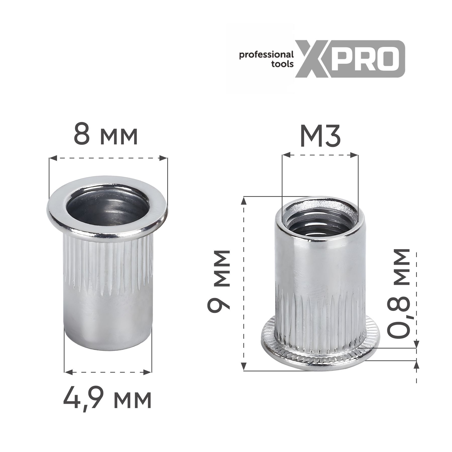 Заклепка резьбовая M3 нержавеющая сталь цилиндрический бортик (100шт.) XPRO XR-115RB09M3-100