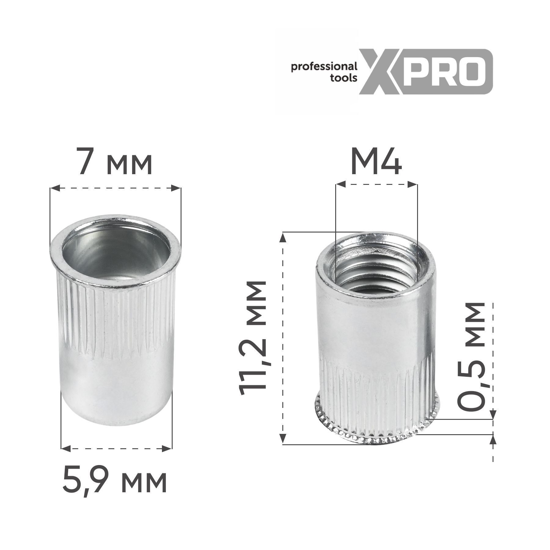 Заклепка резьбовая M4 уменьшенный бортик, белый цинк (100шт.) XPRO XR-135RC112M4-100