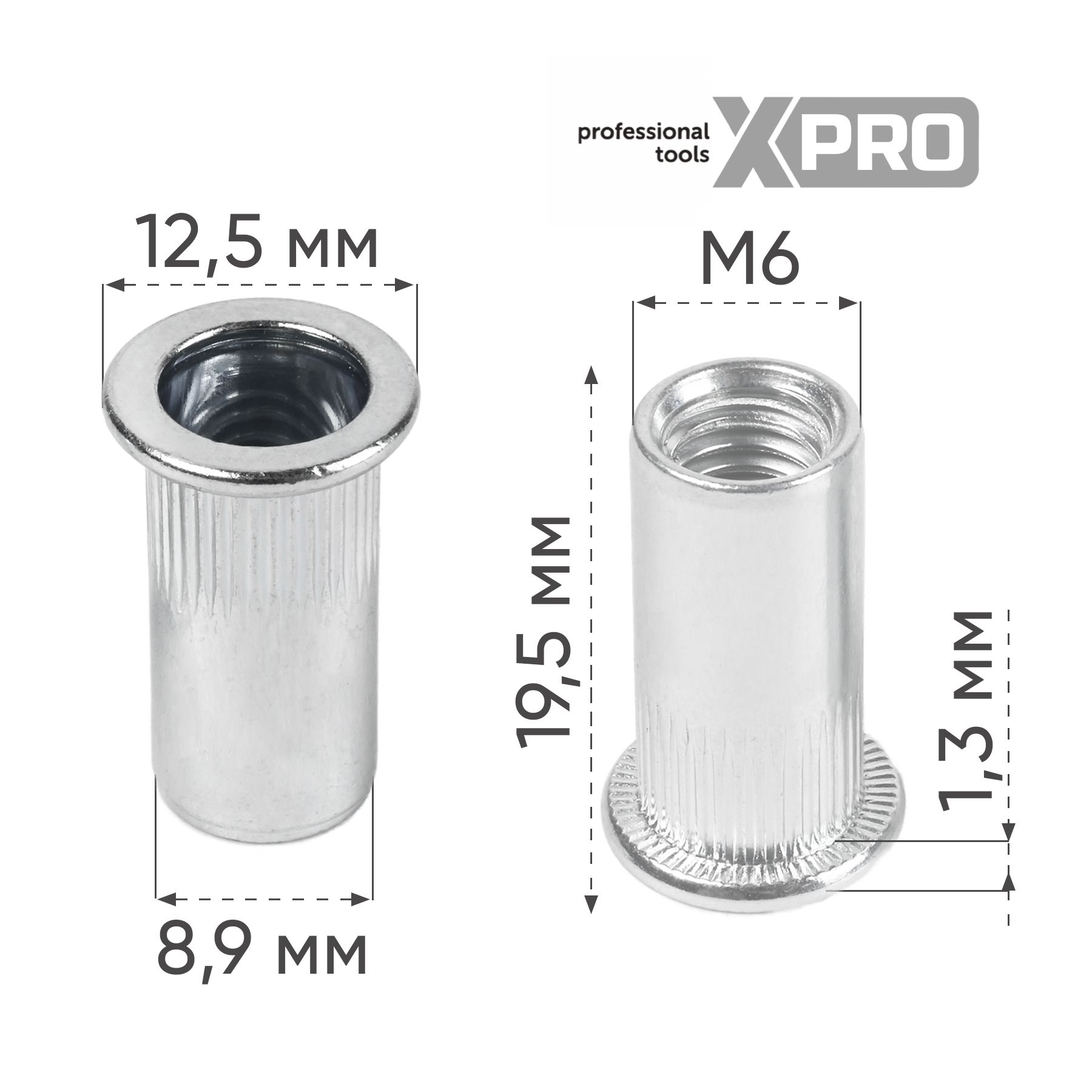 Заклепка резьбовая M6 цилиндрический бортик, длинная, белый цинк (1000шт.) XPRO XR-135RB195M6-1000