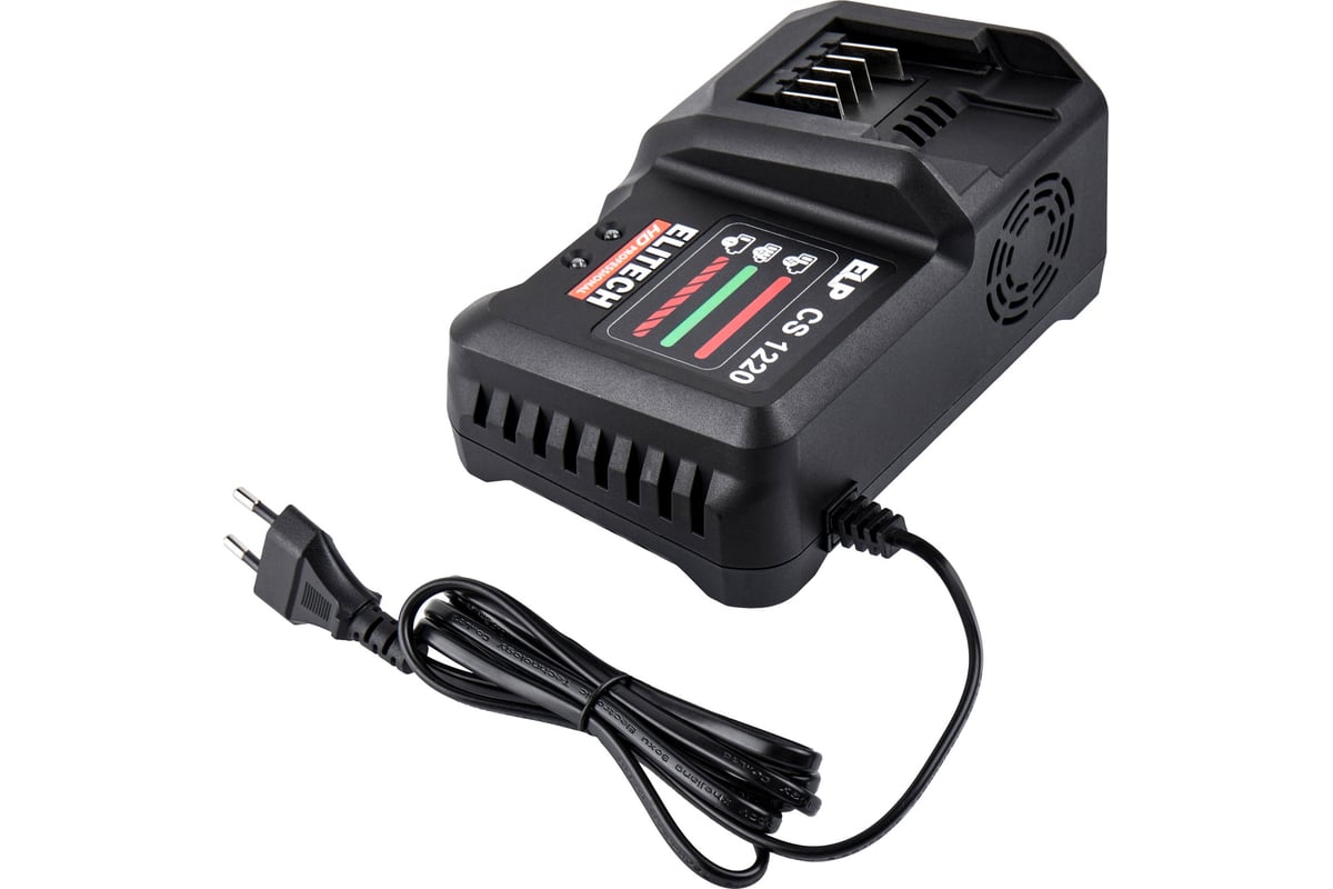 - Зарядное устройство для Li-Ion аккумуляторов ELITECH напряжением 10,8-20 В слайдерной конструкции. Ток заряда 6 А.