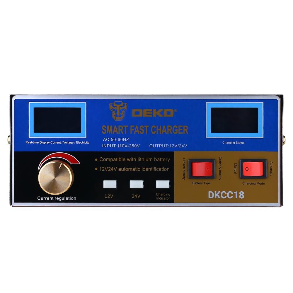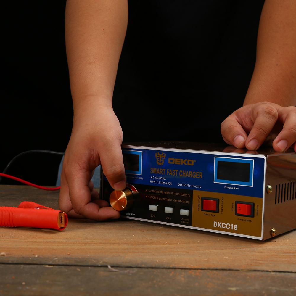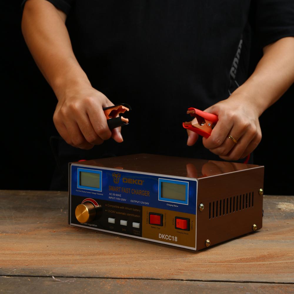 - Зарядное устройство DEKO DKCC18 запустит автомобиль при недостаточном заряде аккумулятора автомобиля.